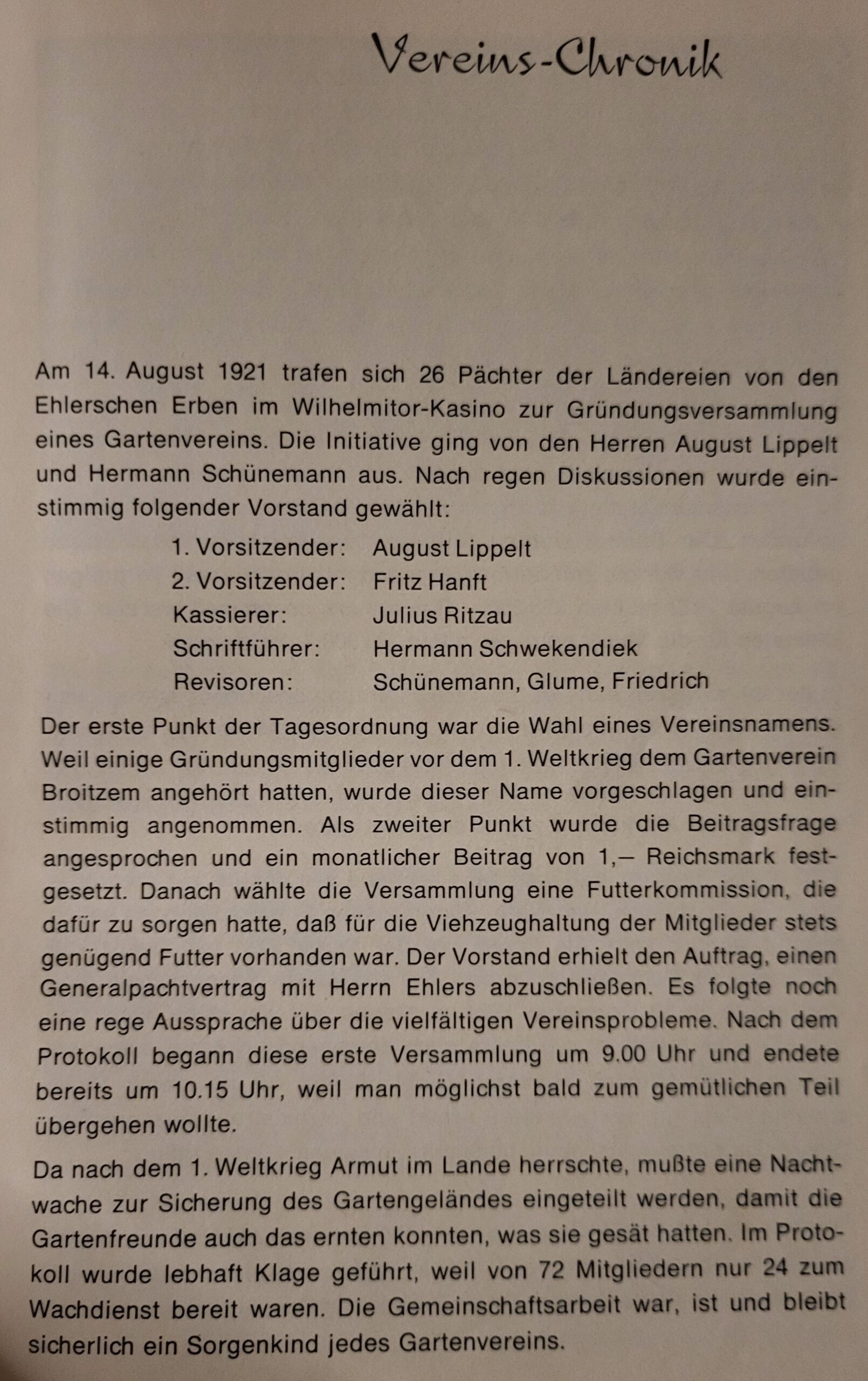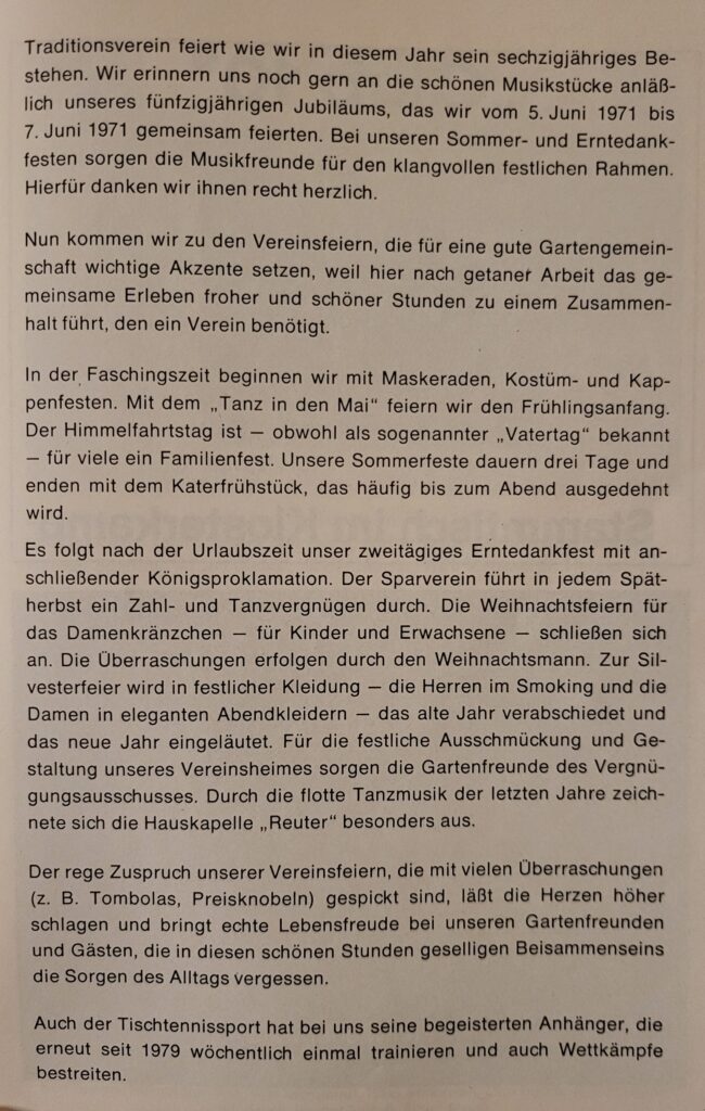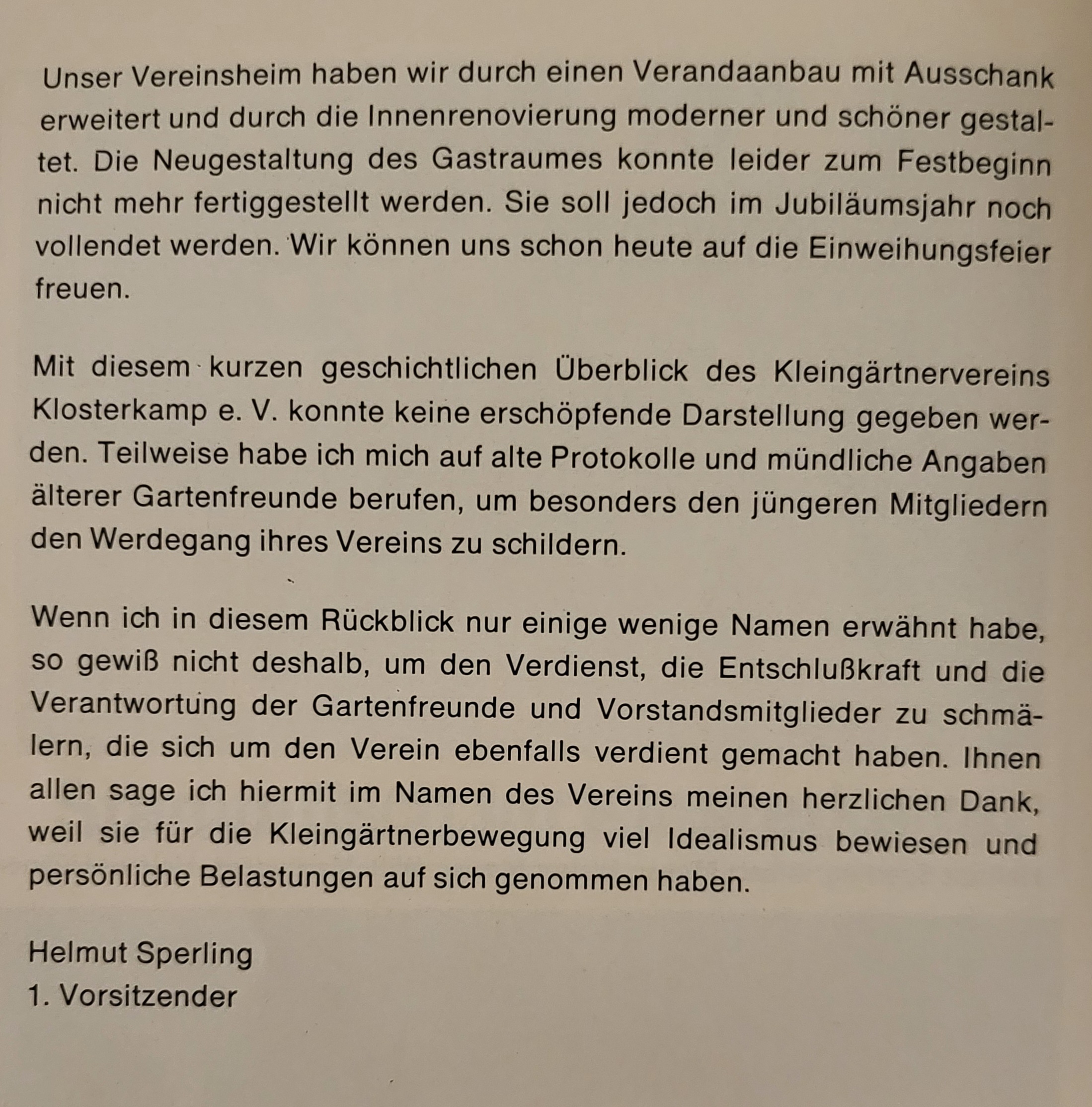 Alle Informationen, Texte und Bilder wurden aus der Festbroschüre zum 60 jährigen Bestehen des KGV Klosterkamp eV aus dem Jahr 1981 entnommen.